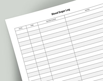Blood Sugar Tracker Printable For Health Medical Fitness Etsy