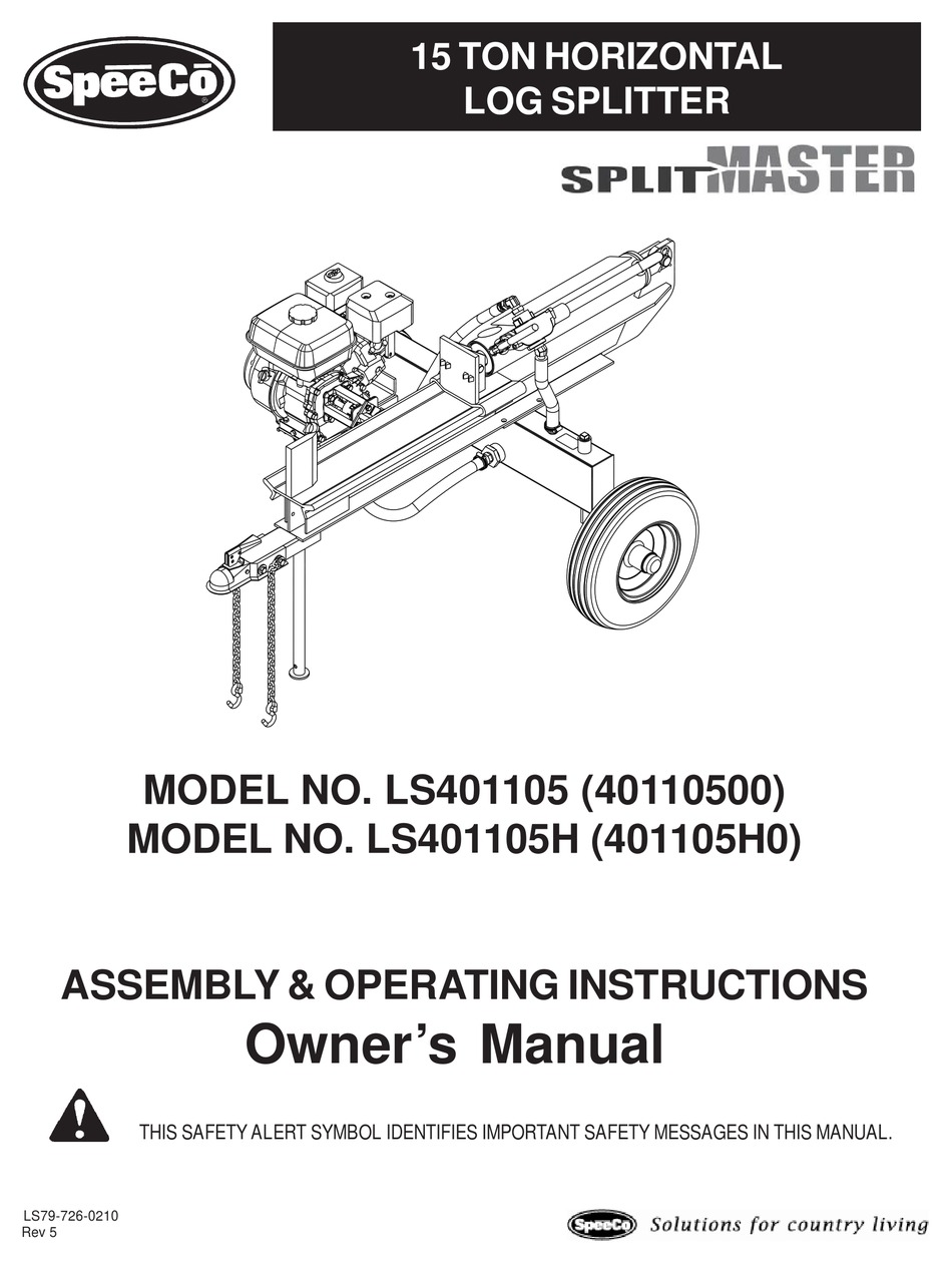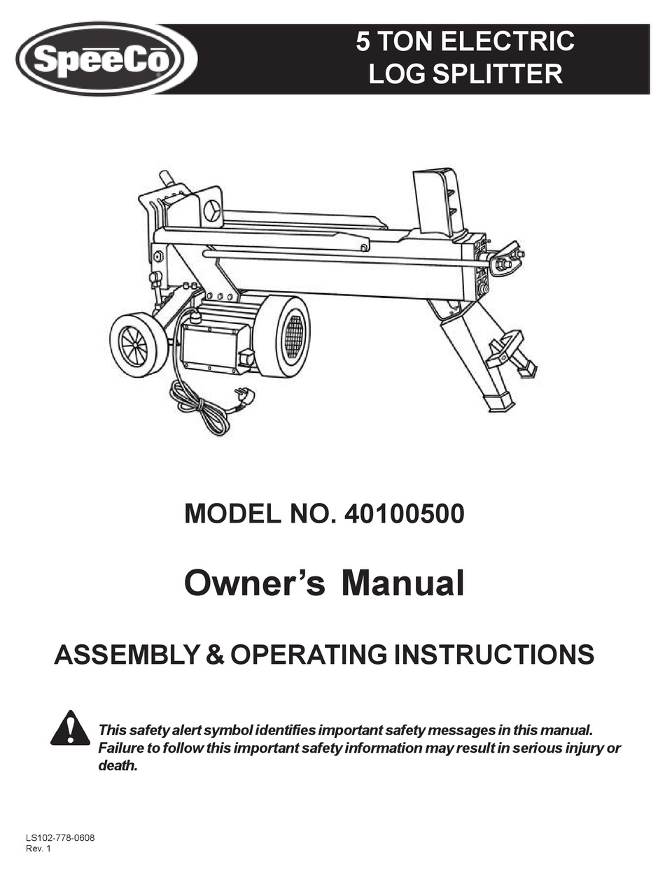 The Speeco 5 ton electric log splitter manual is an earnest trial that would equip you with the understanding knowledge and procedures operating a power tool like this. Music snippet by Enemy I am my Band. Shop 163 Log Splitter Replacement Parts at Northern Tool Equipment.